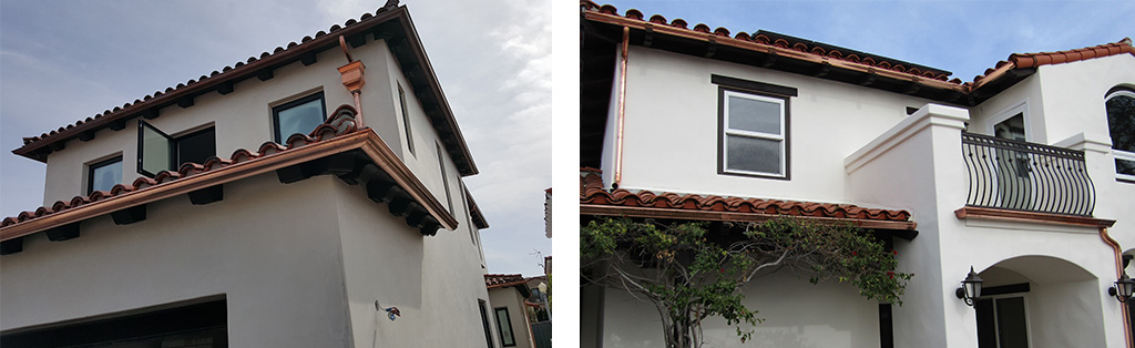 An additional benefit of installing copper gutters in Orange County is that there is a large range of accessories from copper leader heads to ornate rain chains.